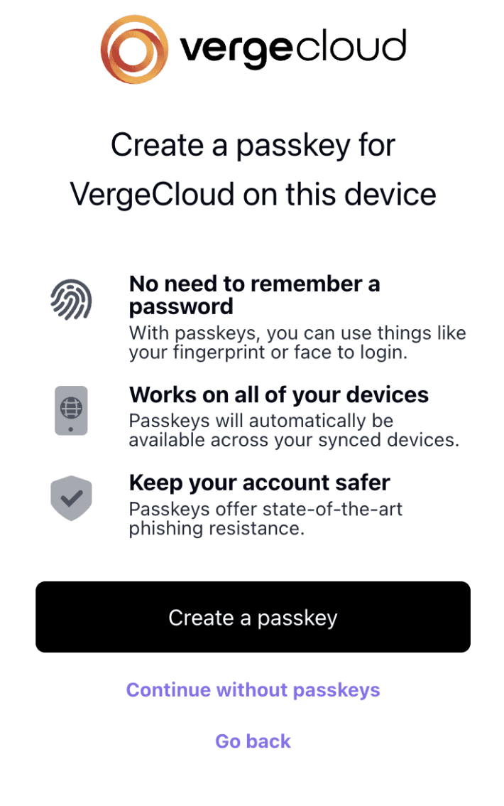 - The first option is to create a passkey, which is recommended for passwordless login using your device’s secure authentication methods, such as biometrics or a hardware key. Passkeys are convenient, faster, and more secure than traditional passwords.