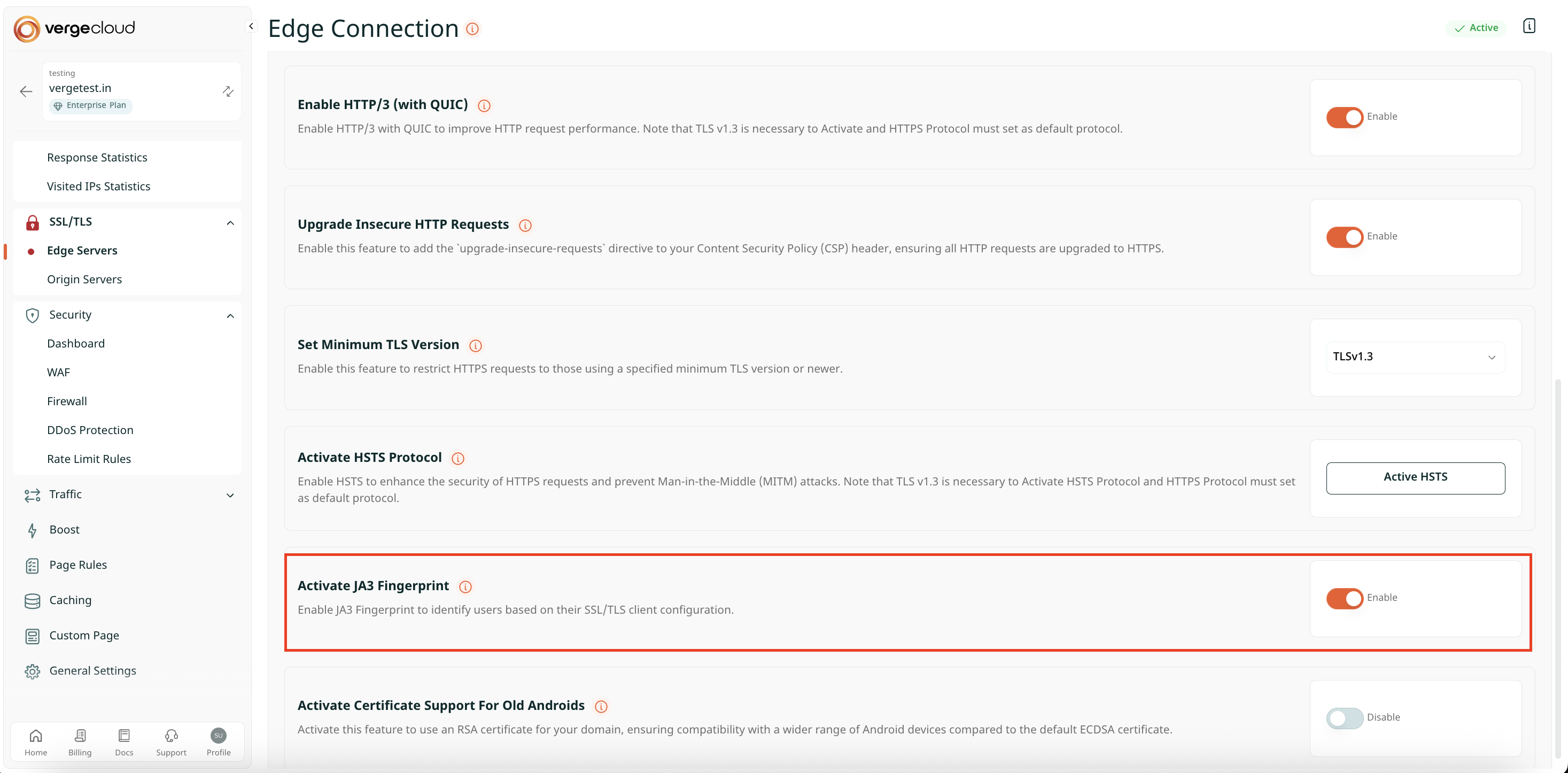SSL/TLS → Edge Servers → Enable JA3 - Download malicious JA3 fingerprints from: