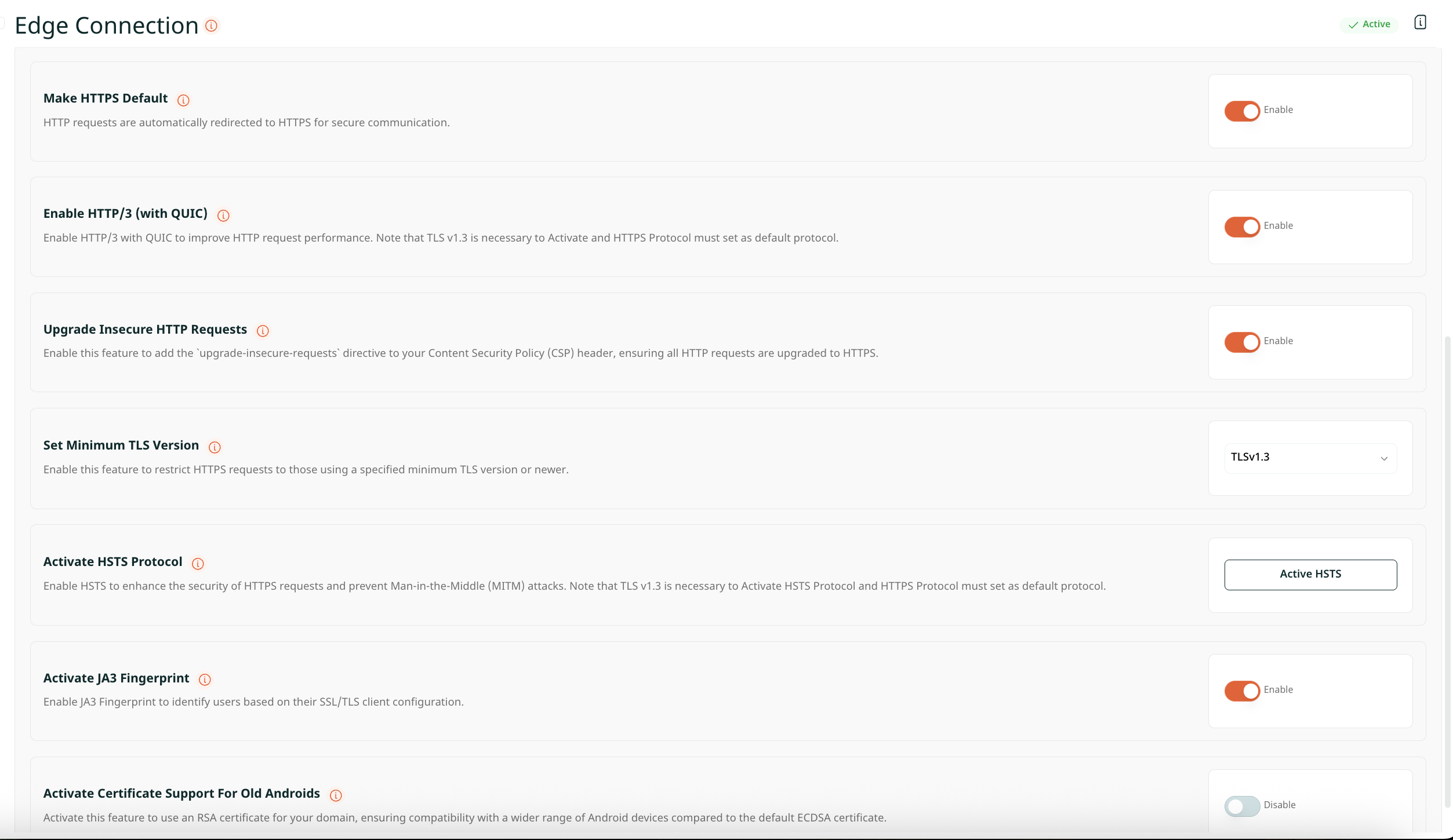 Activating HTTPS ensures that all visitors communicate with VergeCloud’s CDN edge servers securely. HTTPS protects user data, improves SEO ranking, and is now a standard requirement for all modern websites.